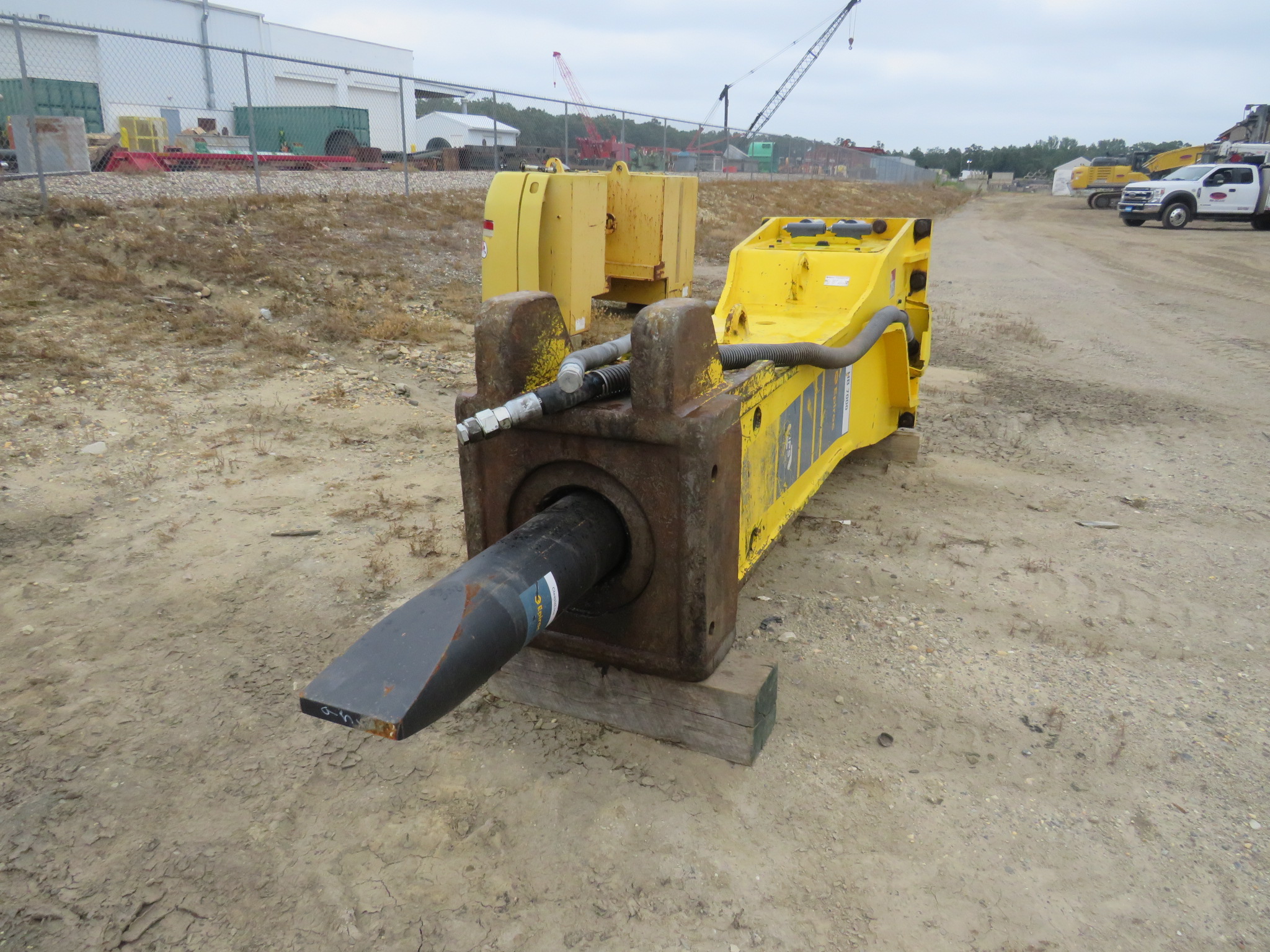 Hydraulic Breaker, 154,500-264,600lb Excavator Weight, Weighs 15,400lbs, 181hp Max. Hydraulic Input Power, 95-119gpm Flow Rate, 2,320-2,610psi Operating Pressure, 280-450bpm Impact Rate.