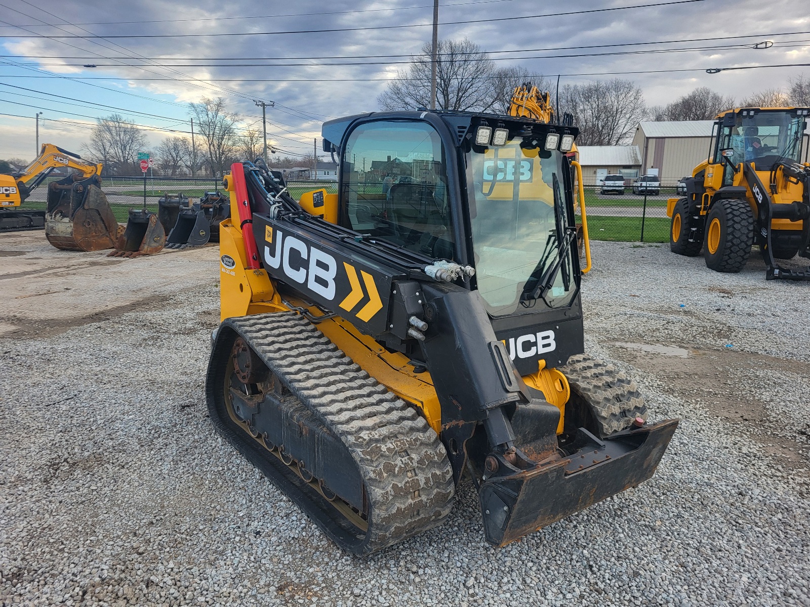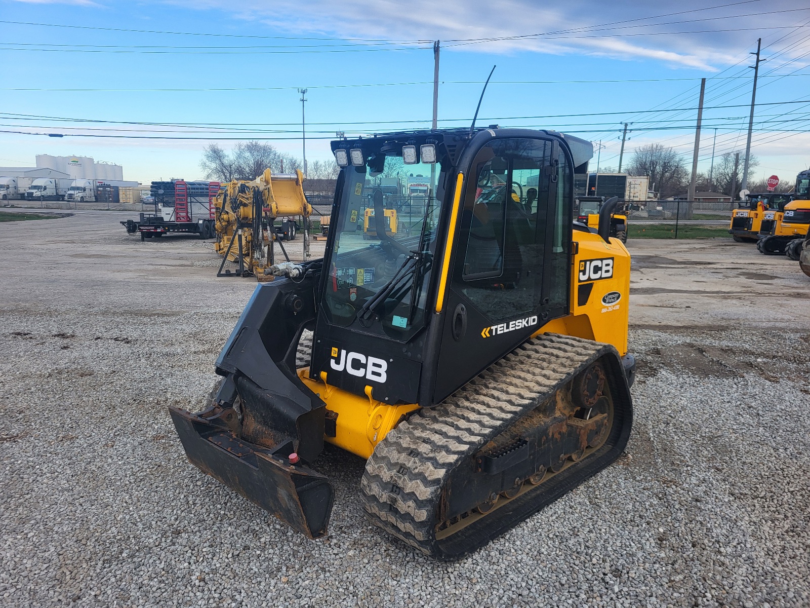 Base Unit, 74HP JCB EcoMAX Engine, Enclosed Cab with Heat & A/C, 3,695lb Lift Capacity, 13ft3in Max Lift Height, JCB Controls with 7 Way Joystick, High Flow Hydraulics, 17.7in Wide Rubber Tracks.