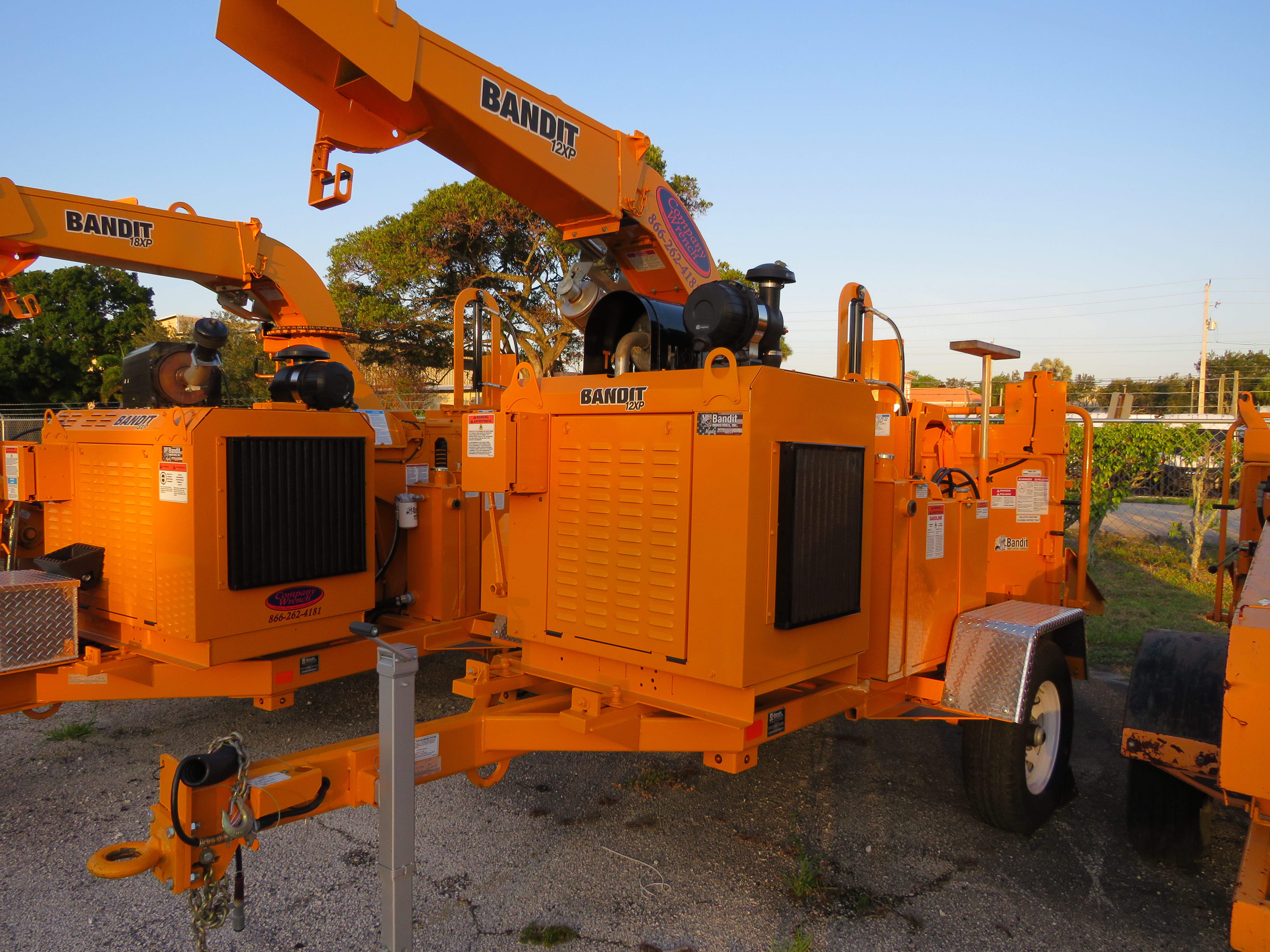 12XP Drum Style Brush Chipper, 12in Chipping Capacity, 84hp Ford Engine, 24in Diameter x 18-3/4in Wide Drum with (4) Dual Edge Knives, 30-3/4in High x 54in Wide Infeed Hopper with Fold Down Infeed Tray, Hydraulic Lift Cylinder, Dual 15.9 CID Hydraulic Feed Motors, Palm Frond Package, Auto Feed with Auto Reversing, 360° Hand Crank Swivel with Adjustable Height Discharge, 2in x 4in Tubular Steel Frame, 7,000lb Torflex Axle with Electric Brakes, Clean Out Door On Transition,Feed Wheel Clean Out Door, Painted Bandit Yellow.