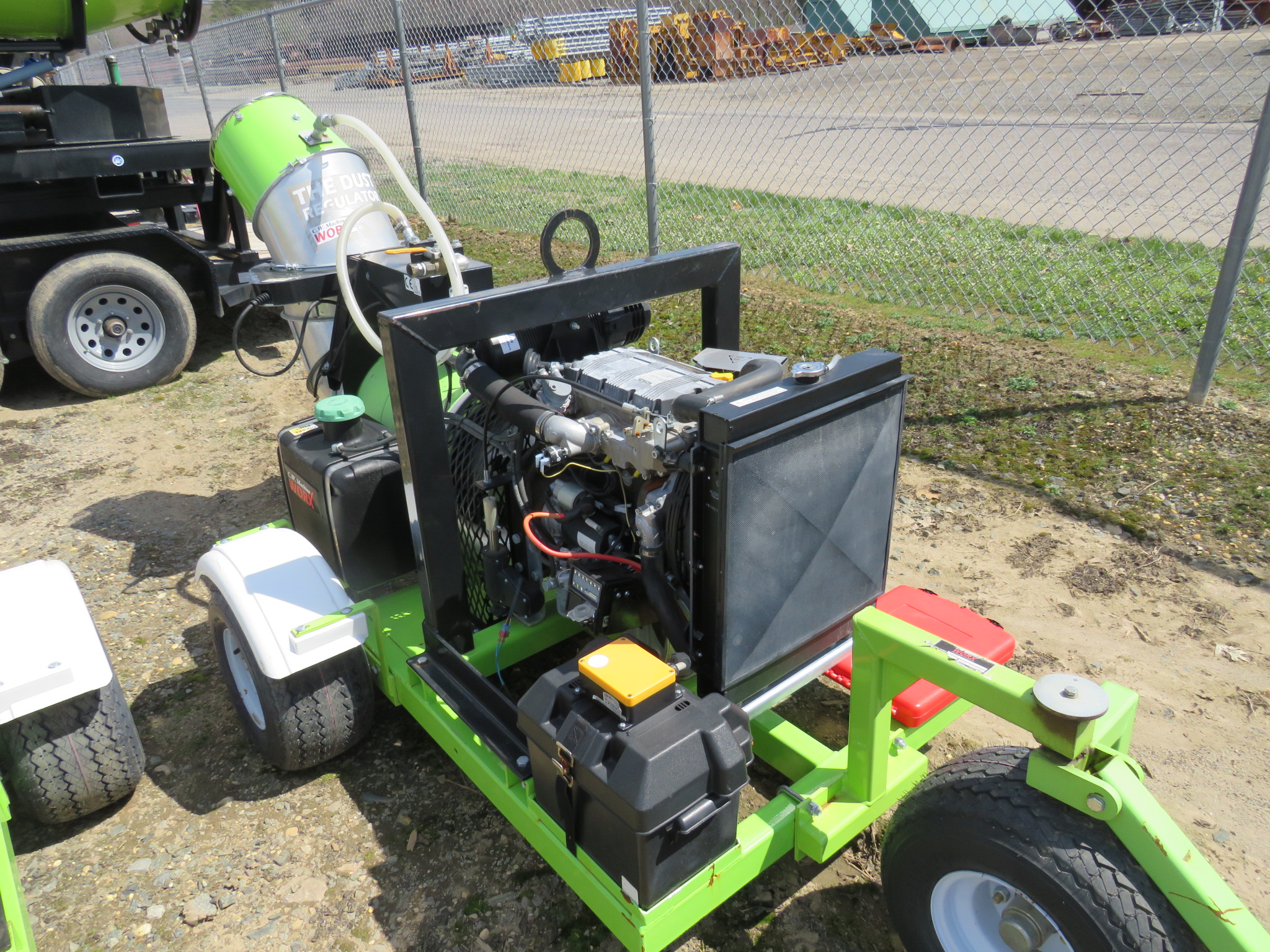 Base Unit, 975lbs, 23hp KDW1003 Diesel Kohler Engine, 10ft6in(L)x4ft(W)x4ft10in(H), Wireless Remote Control, 0-20gpm, 3/4in Water Hose Input, 40-120psi Water Pressure, 50-200 Micron Droplet Size.