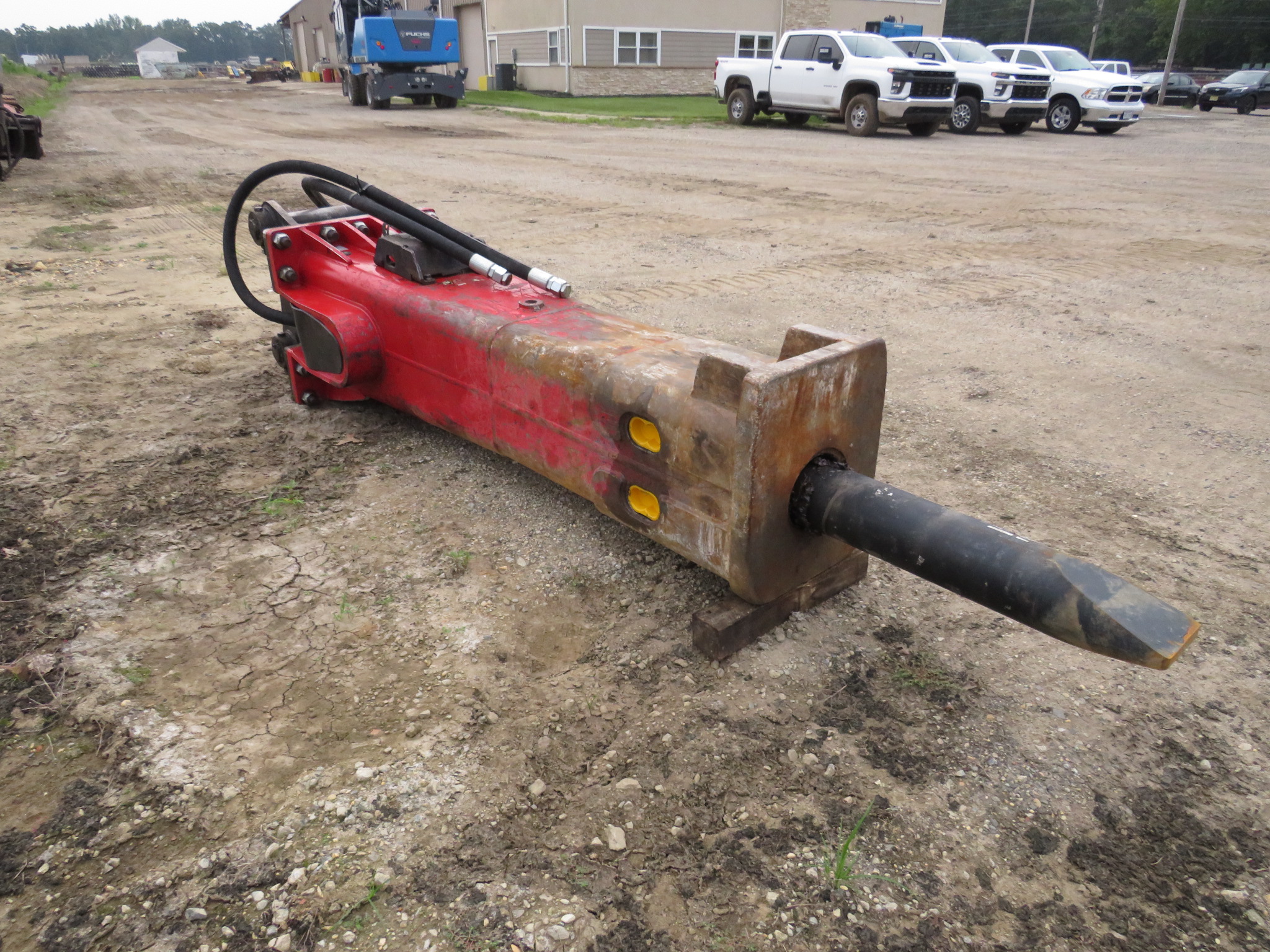 Hydraulic Breaker, 77,000-95,000lb Excavator Weight, Weighs 7,500lbs, 11,000ft/lbs Impact Energy Class, 2,175-2,320psi Operating Pressure, 66-93gpm Flow Rate, 400-560bpm Impact Rate.