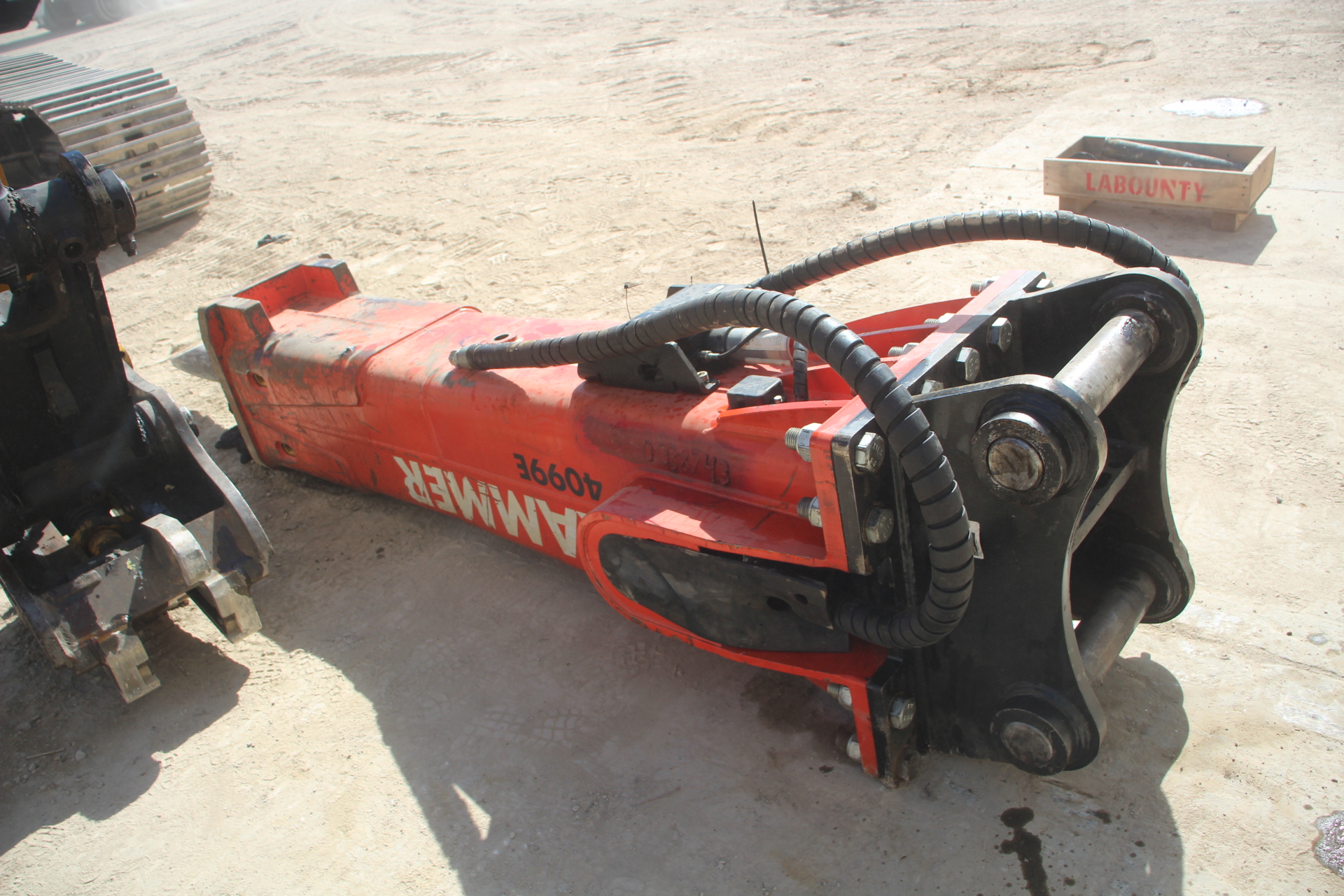 Hydraulic Hammer, 75,000-121,300lb (36-55t) Carrier Weight Range, 125hp Input Power, 116.6in Working Length, 400-560bpm Long Stroke Impact Rate, 520-700bpm Short Stroke Impact Rate, 2,175-2,320psi Operating Pressure, 66-92.5gal/min Oil Flow Range, 6.54in Tool Diameter, 7,450-7,800lb Working Weight.