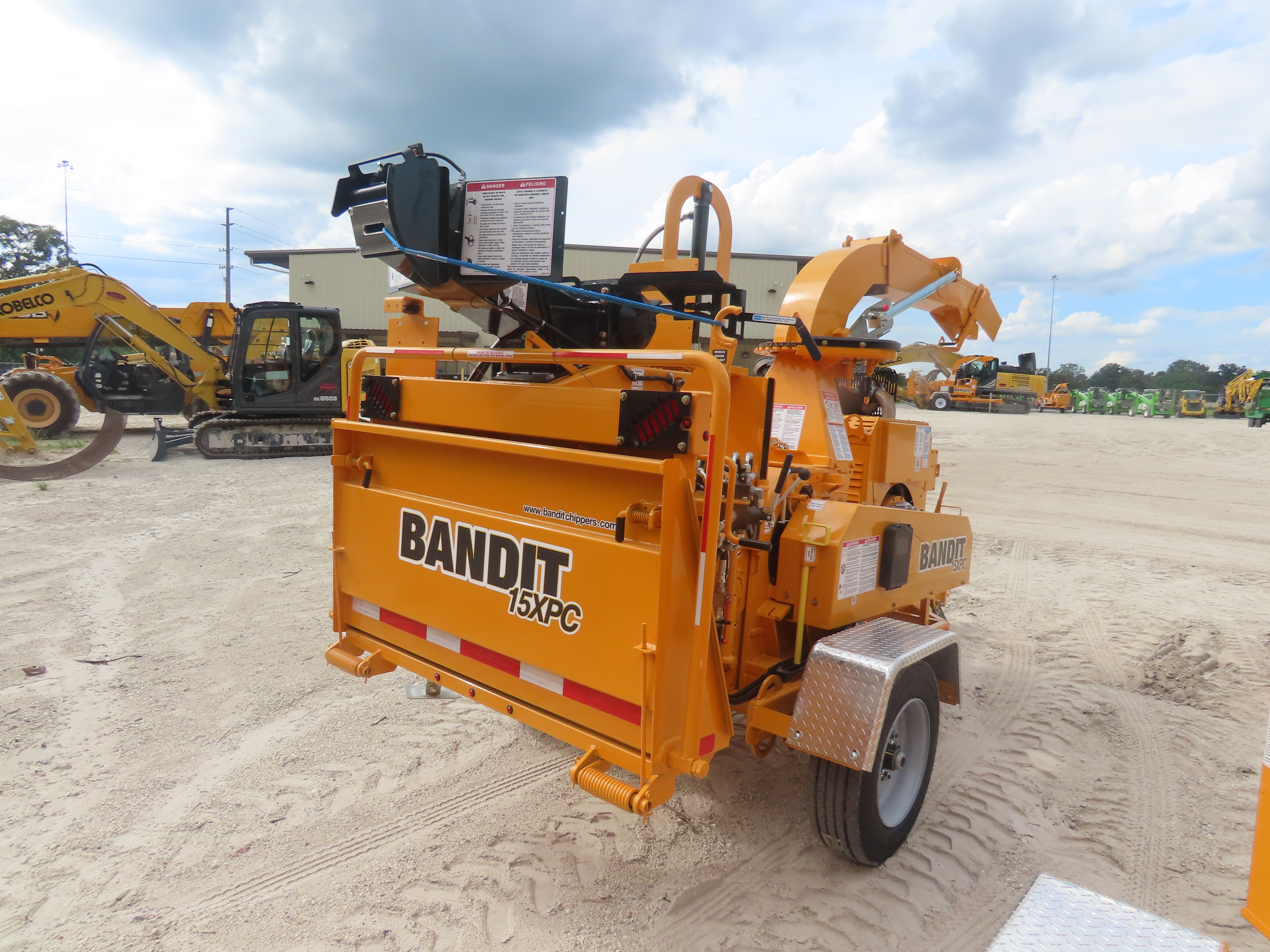 15XPC Drum Style Brush Chipper, 15in Chipping Capacity, 125hp Ford 3.5L Engine, 24in Diameter x 18-3/4in Wide Drum with (4) Dual Edge Knives, 29in(H) x 54(W) Infeed Hopper with 30in Fold Down Infeed Tray, Hydraulic Lift Cylinder, Auto Feed with Auto Reverse, Spring Loaded Horizontal Feed Wheels, Palm Tree Feed Kit, Adjustable 360 Degree Hand-Crank Swivel Discharge with 12in Adjustable Chip Deflector, 8,000lb Torflex Axle with Electric Brakes, Pintle Hitch, Clean Out and Inspection Door on Discharge, Painted Yellow.
