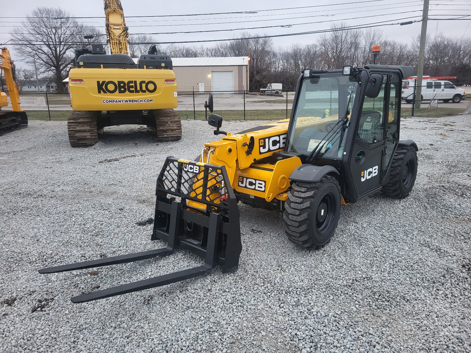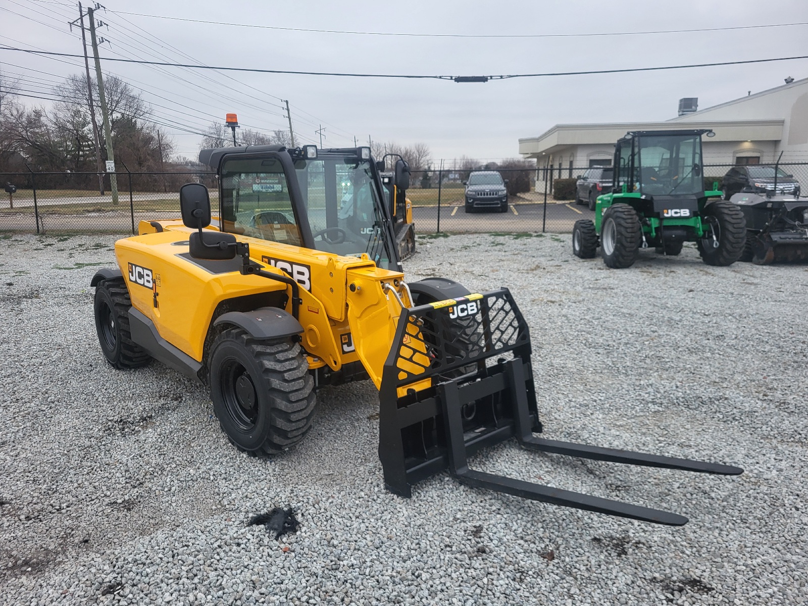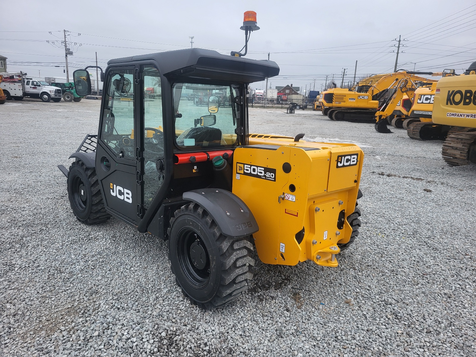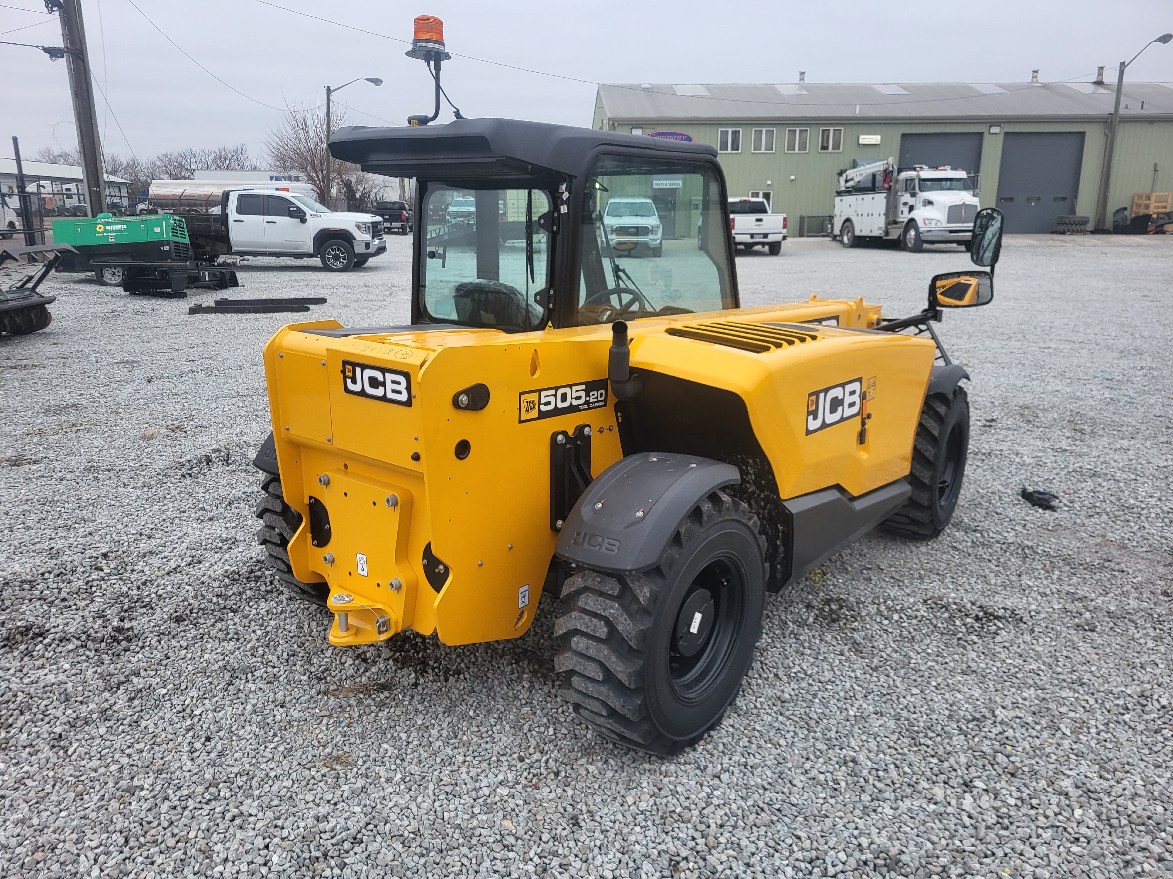 Base Unit, 74hp JCB Diesel by Kohler Engine, Basic Cab with A/C, 5,500lb Max. Lift Capacity, 20ft Max. Lift Height, Single Lever Joystick, Front Work Lights, Face Level Fan, Cloth Suspension Seat, LED Strobe Beacon, Hydraulic Pin Locking Skid Steer Carriage, 12-16.5 Galaxy Tires.