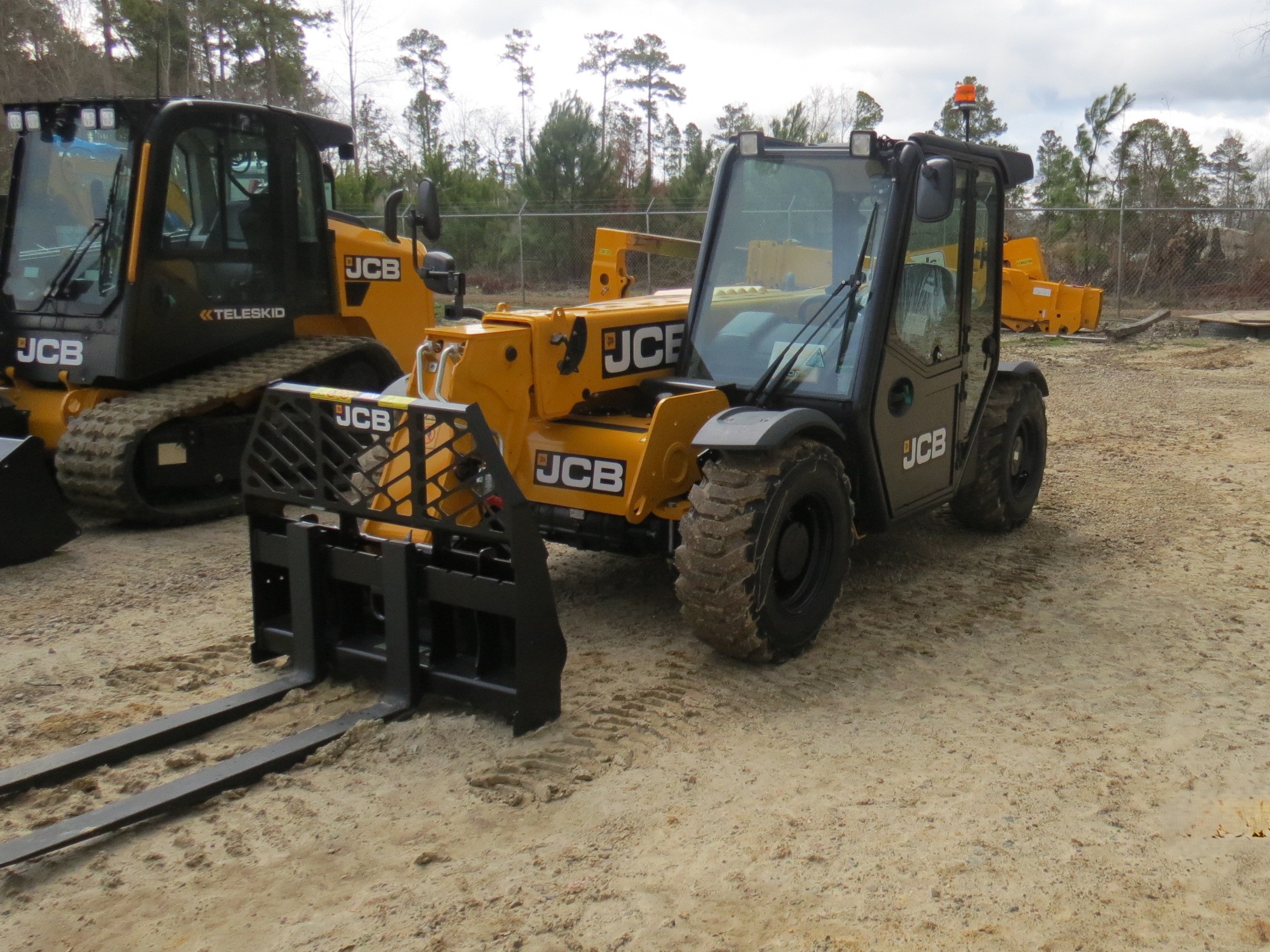 Base Unit, 74hp JCB Diesel by Kohler Engine, Basic Cab with A/C, 5,500lb Max. Lift Capacity, 20ft Max. Lift Height, Front Work Lights, Face Level Fan, Cloth Suspension Seat, LED Strobe Beacon, Hydraulic Pin Locking Skid Steer Carriage, 12-16.5 Galaxy Tires.