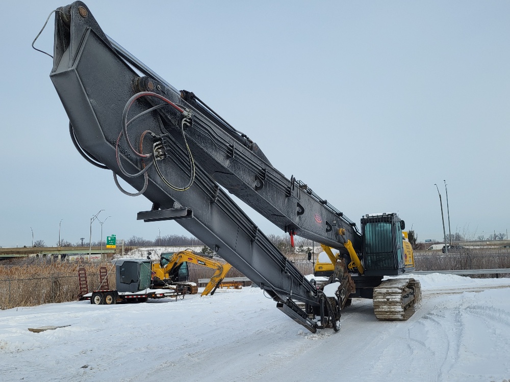 Base Unit, 265hp Isuzu 6HK1 Tier 4 Engine, Enclosed Cab with Heat & A/C, Cab Guard, 60ft 2-PC HR Assembly, Open/Close/Rotation Hydraulics, Hand Control Pattern Changer, Single Pedal Travel, Air Suspension Heated Seat, Heavier Counterweight, LED Work Lights, Travel Alarm, 31.5in Semi-Triple Grouser Shoes. For Rent Nationwide Call for Availability. For Sale Nationwide.