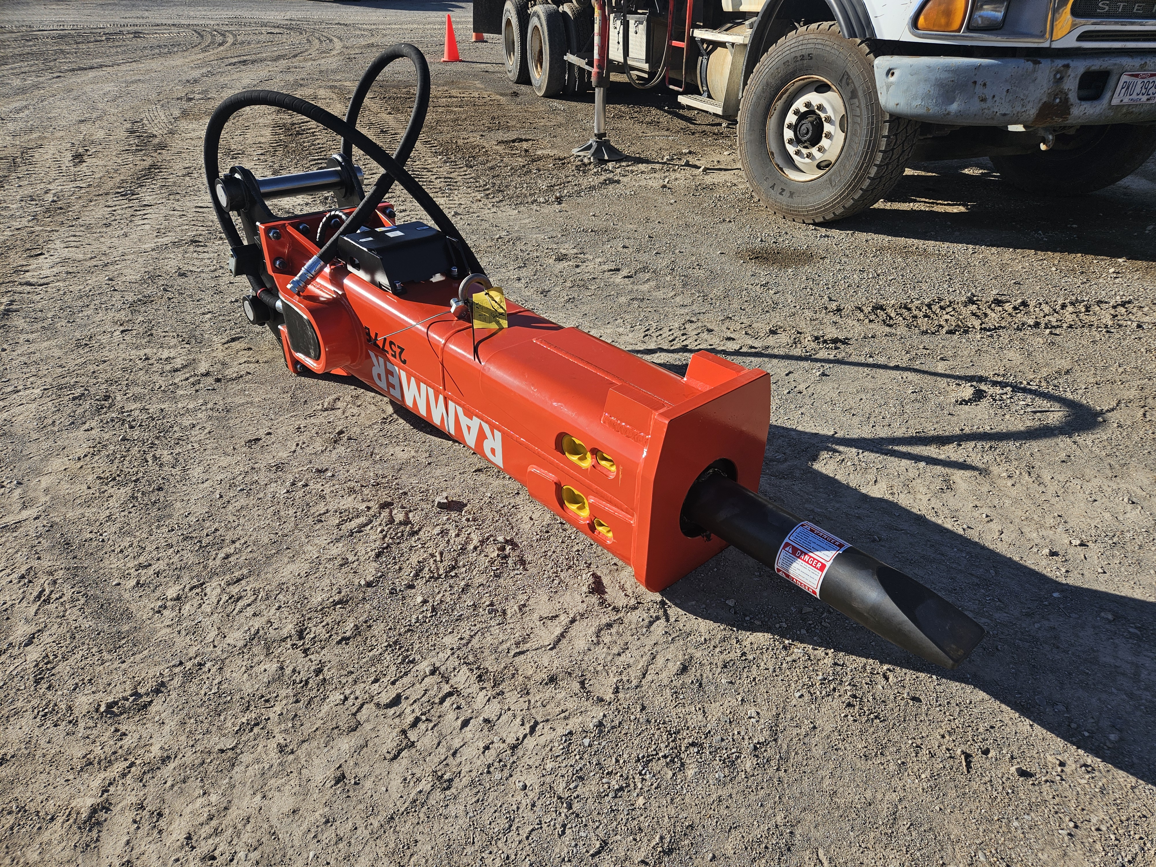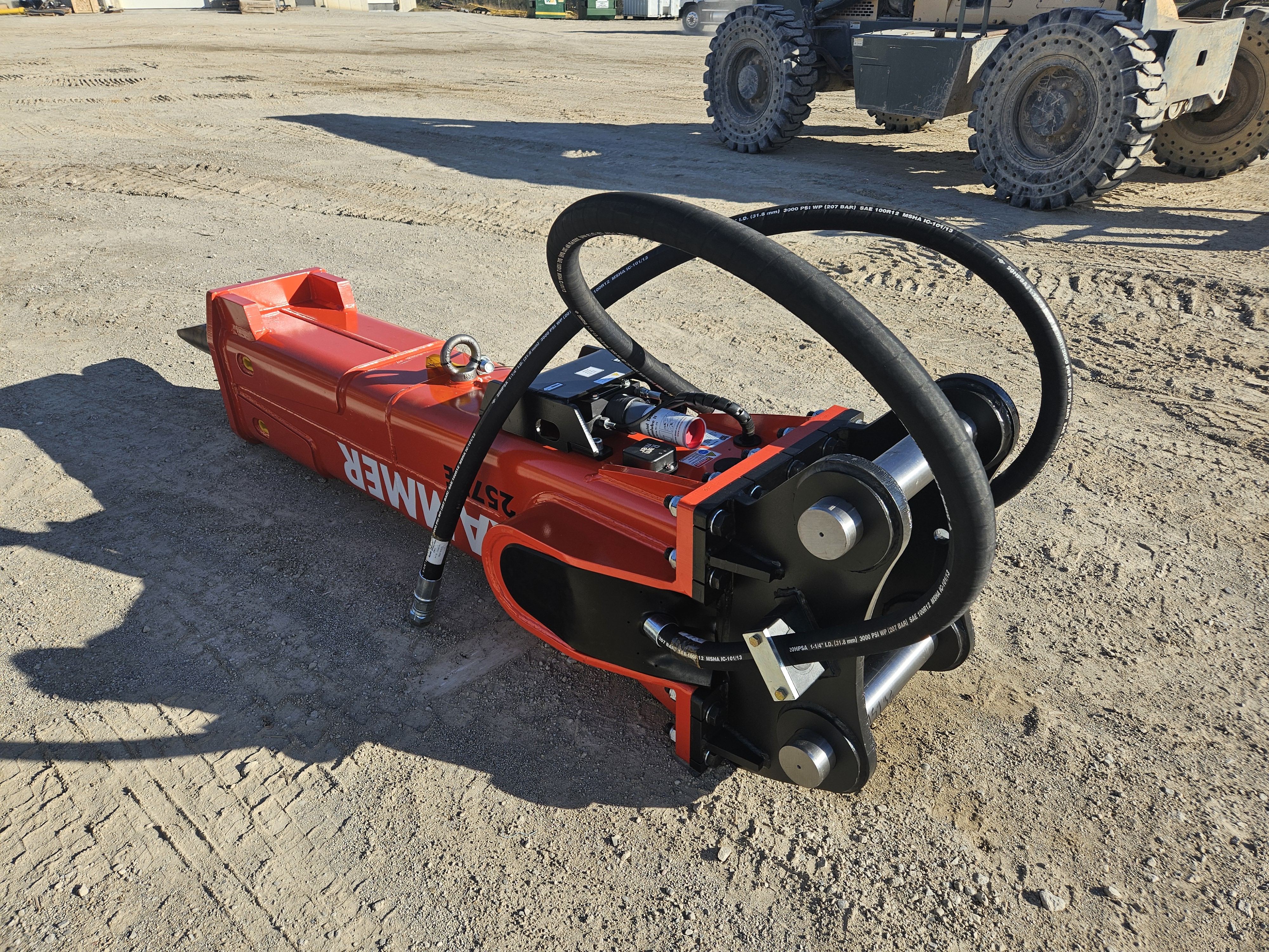Hydraulic Hammer, 46,300-70,500lb (21-32t) Carrier Weight Range, 64hp Input Power, 450-750bpm Impact Rate, 1,960-2,105psi Operating Pressure, 37-52.80gal/min Oil Flow Range, 5.31in Tool Diameter, 3,680lb Working Weight.