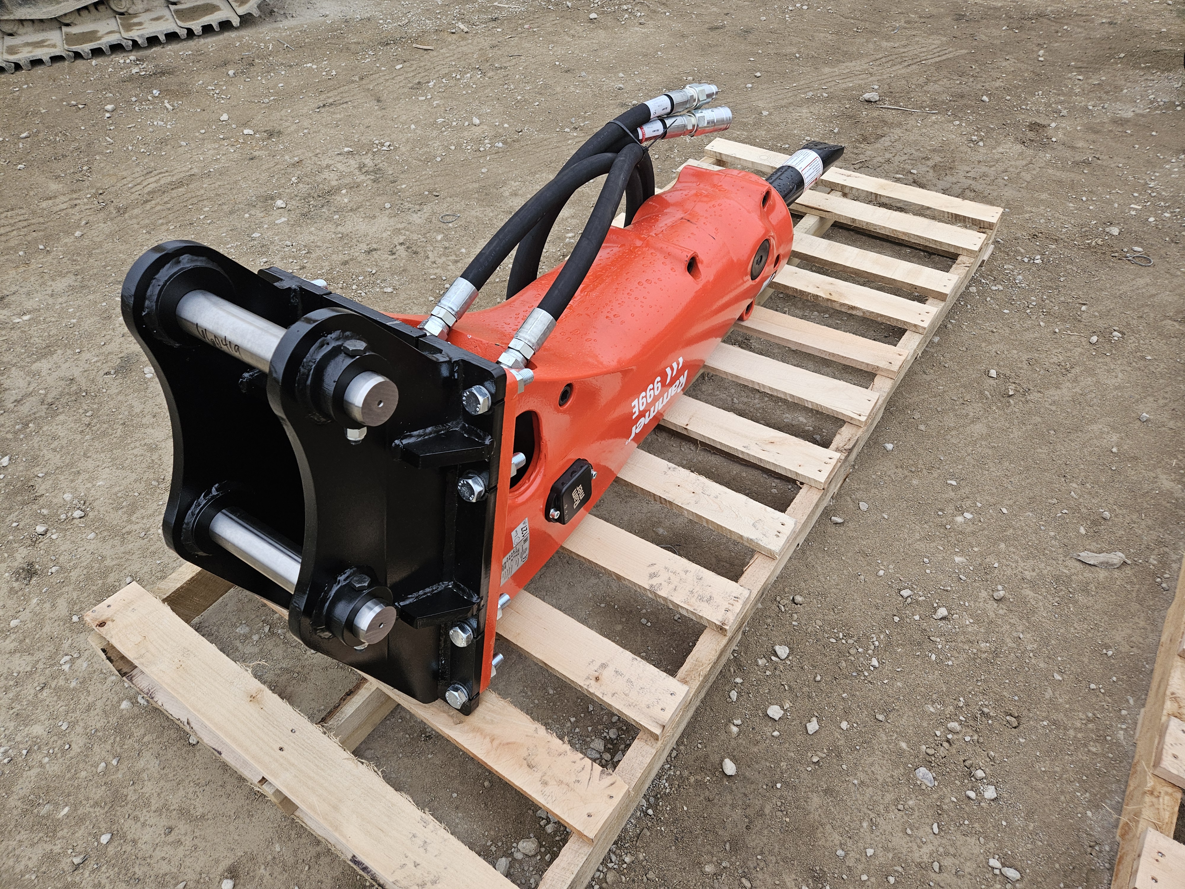 Hydraulic Hammer For SK85, 47hp Input Power, 500-1700bpm Impact Rate, 1,450-2,030psi Operating Pressure, 13.2-39.6gal/min Oil Flow Range, 3.54in Tool Diameter, 1,110lb Minimum Working Weight.