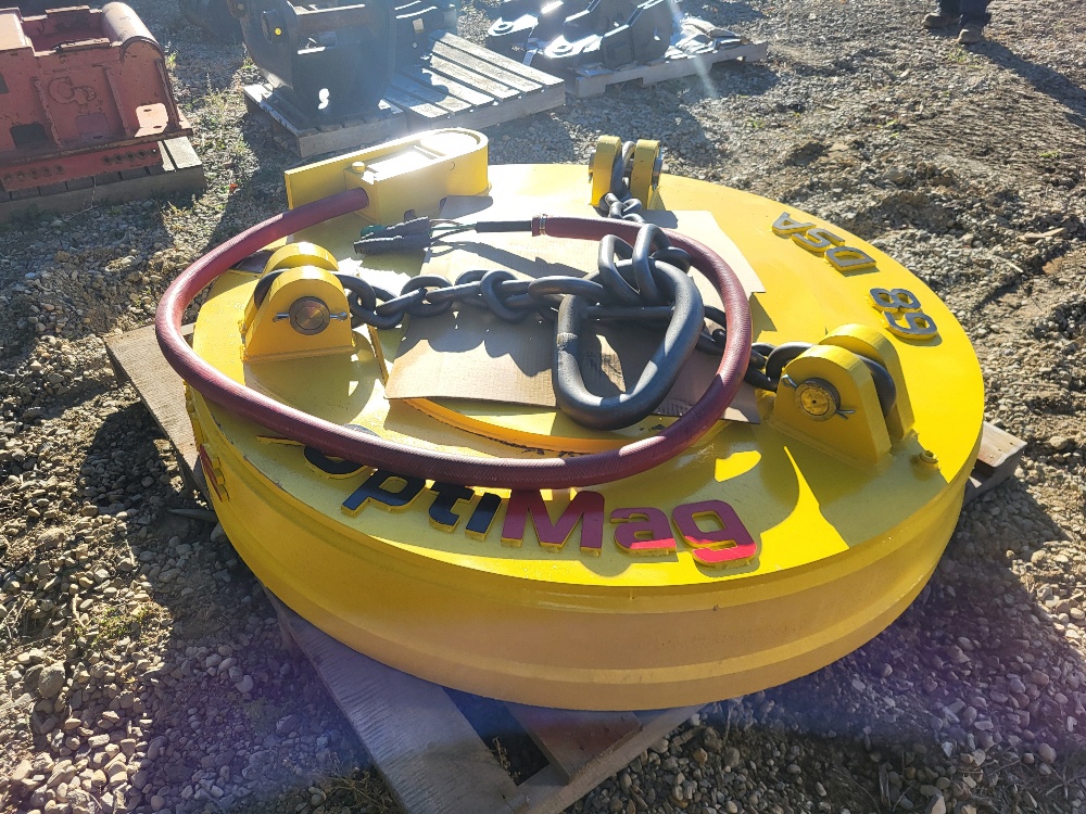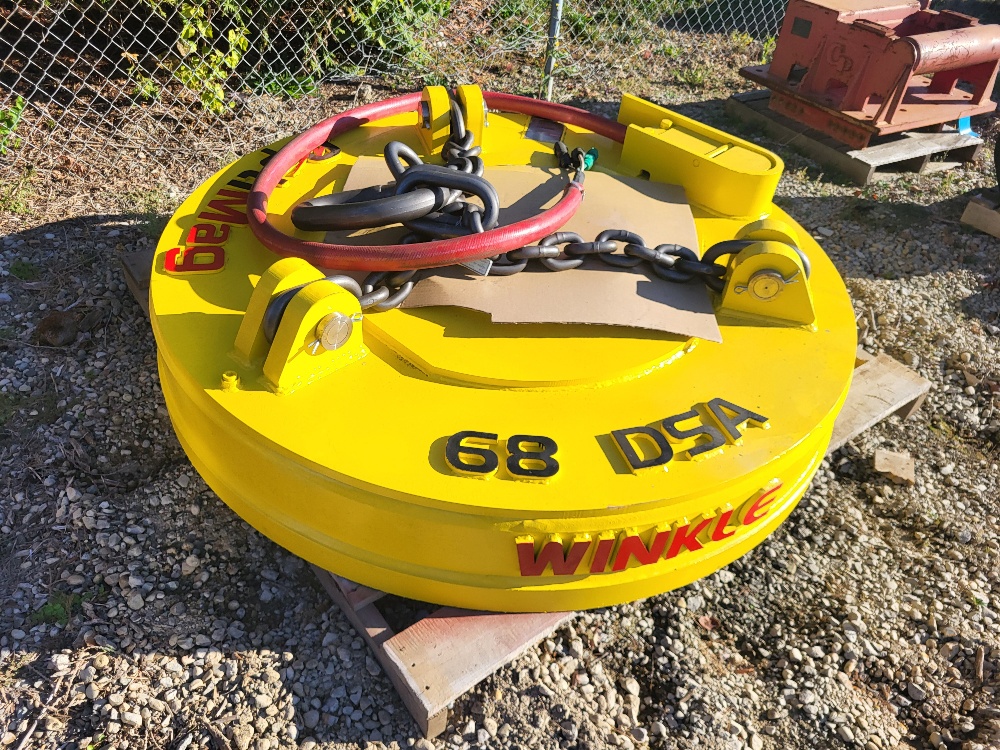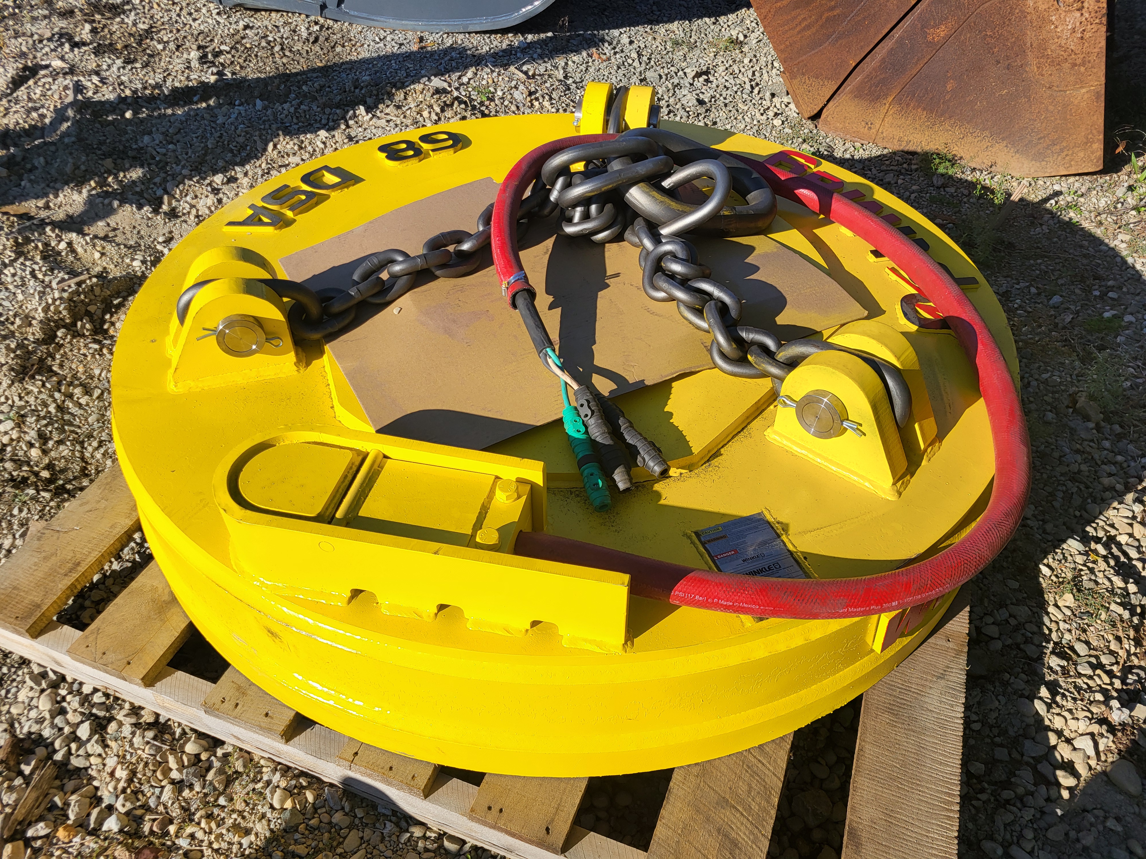 68in Scrap Magnet, 6,285lbs, 90amps, 230v, 20kW Minimum Power Required, #6 Minimum Cable Required.