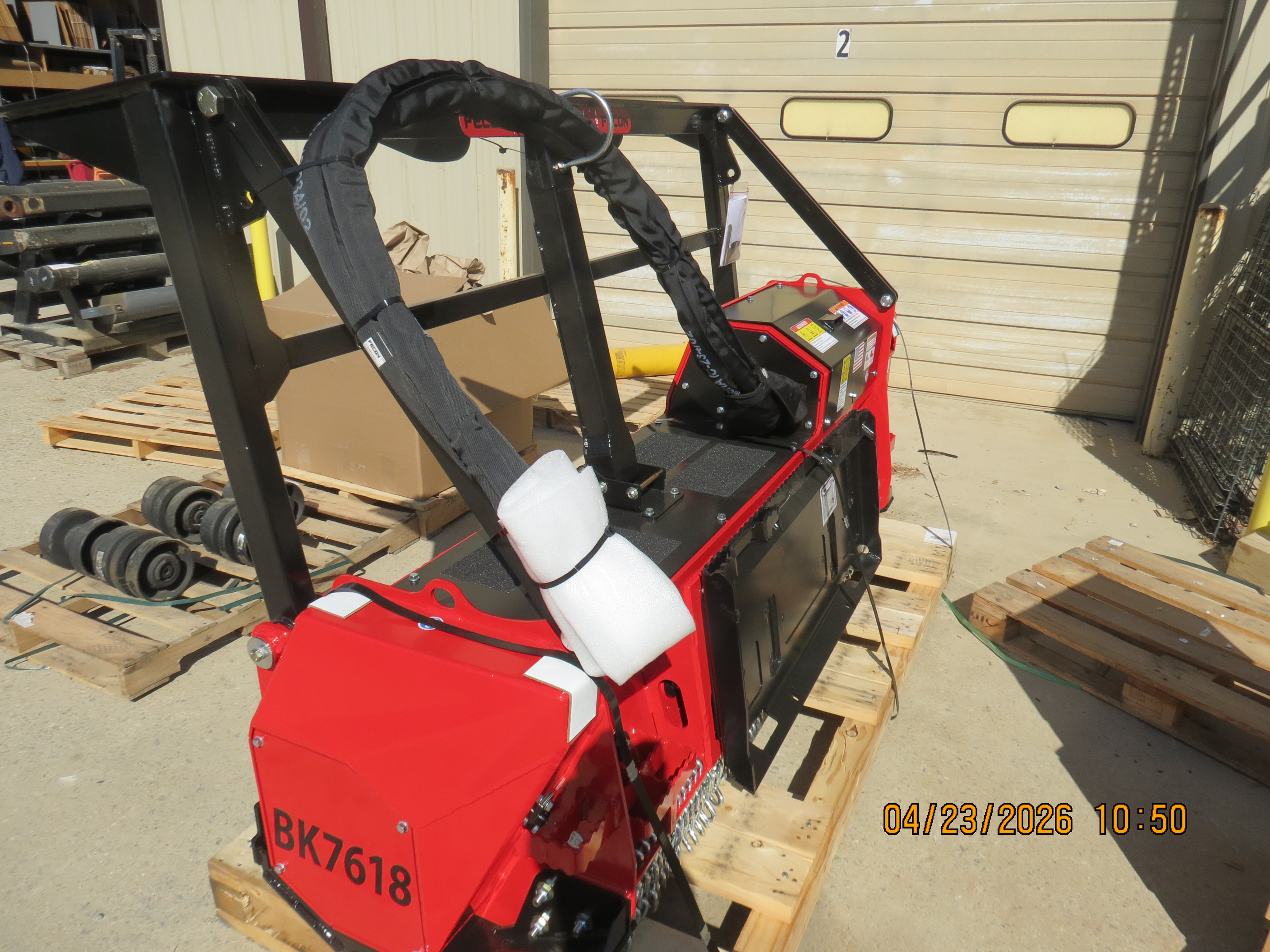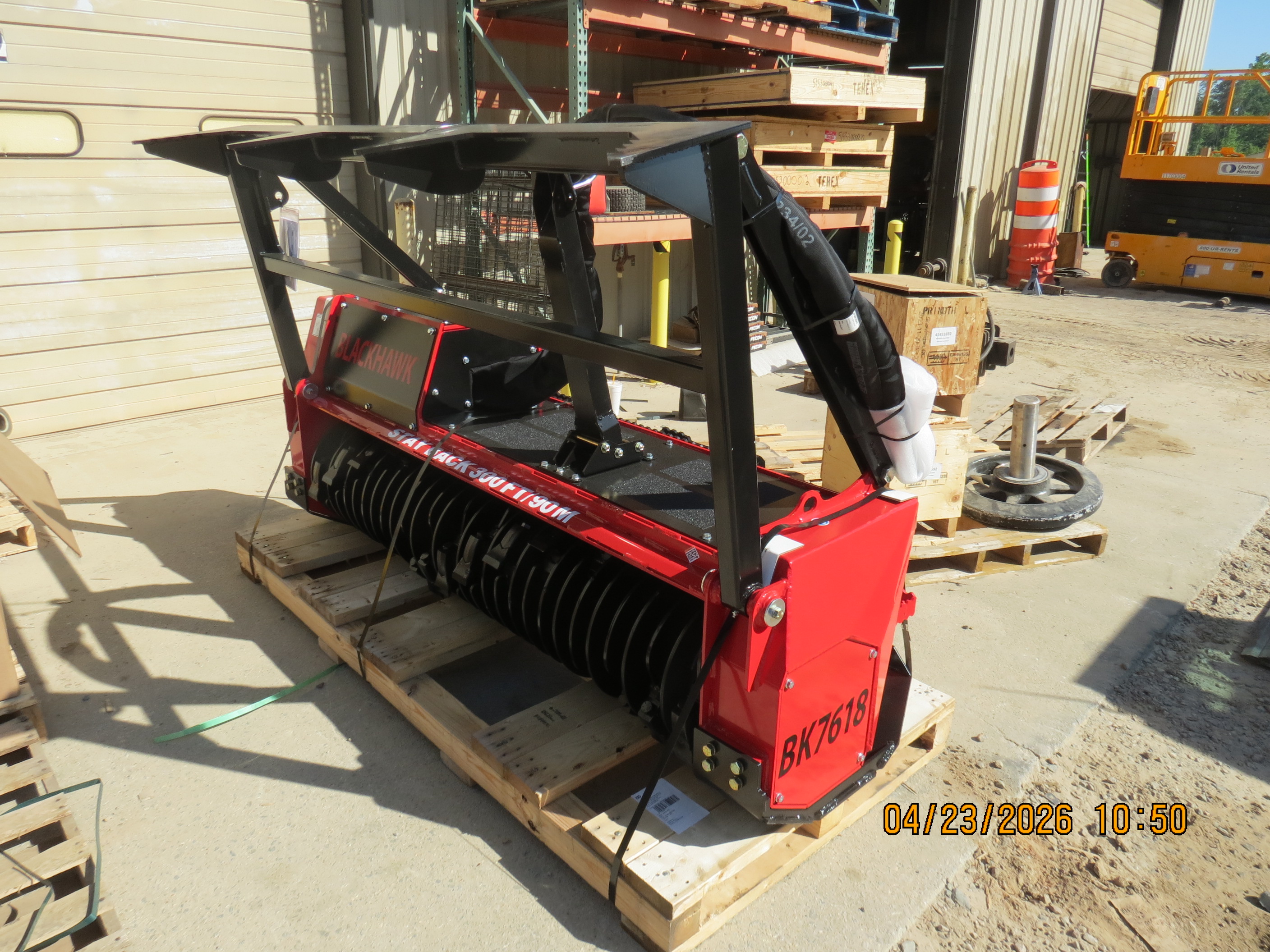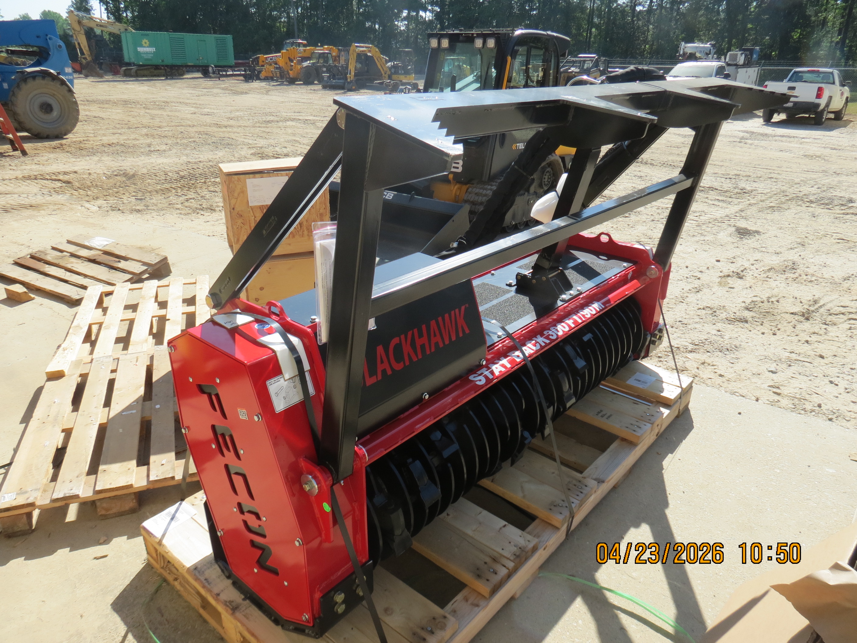 Blackhawk Skid Steer Mulching Attachment, 120hp, 107v Motor, 2,980lb Weight, 76in Working Width, 91in Overall Width, 30-45gpm Flow Range, 6,000psi Max. Pressure, 18in Rotor Diameter, 2,400rpm Rotor Speed, ST65mm Rotor Bearing Size, 30x Tools.