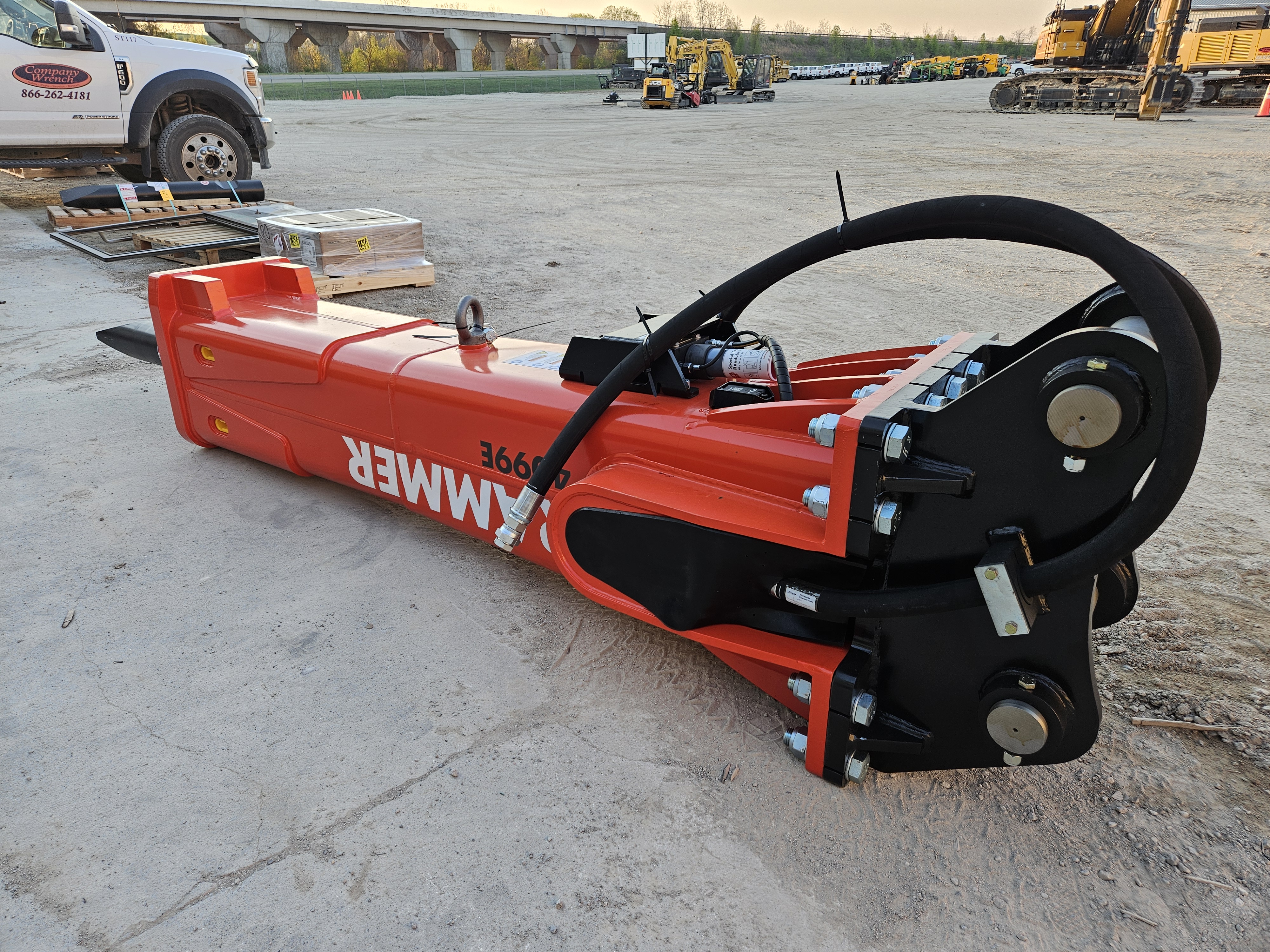 Hydraulic Hammer, 75,000-121,300lb (36-55t) Carrier Weight Range, 125hp Input Power, 116.6in Working Length, 400-560bpm Long Stroke Impact Rate, 520-700bpm Short Stroke Impact Rate, 2,175-2,320psi Operating Pressure, 66-92.5gal/min Oil Flow Range, 6.54in Tool Diameter, 7,450-7,800lb Working Weight.