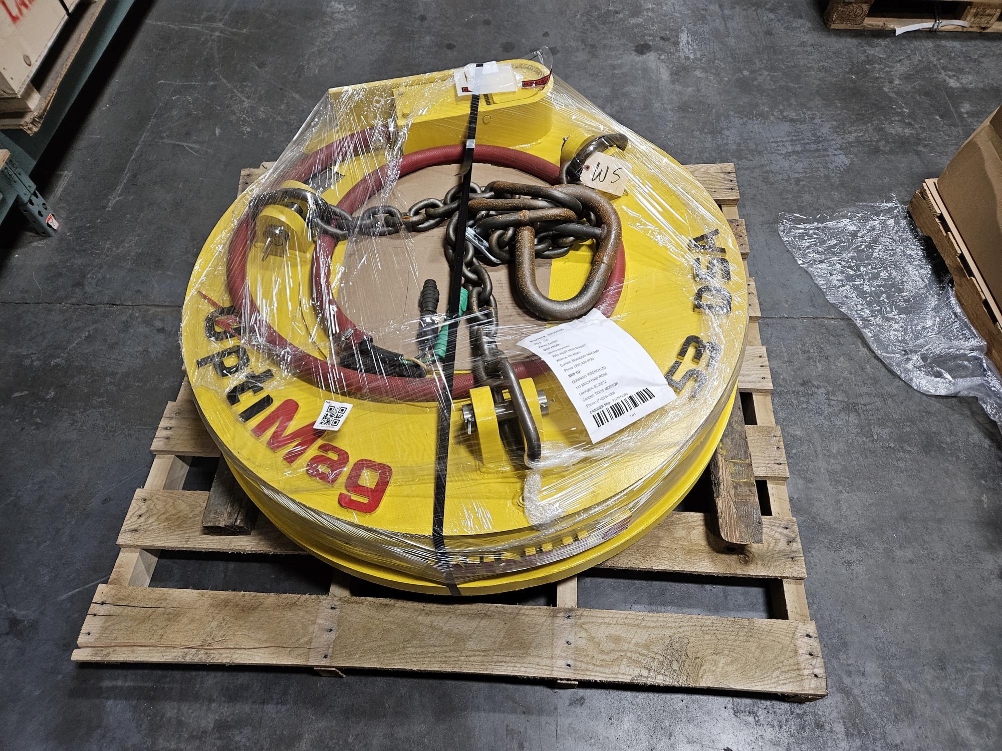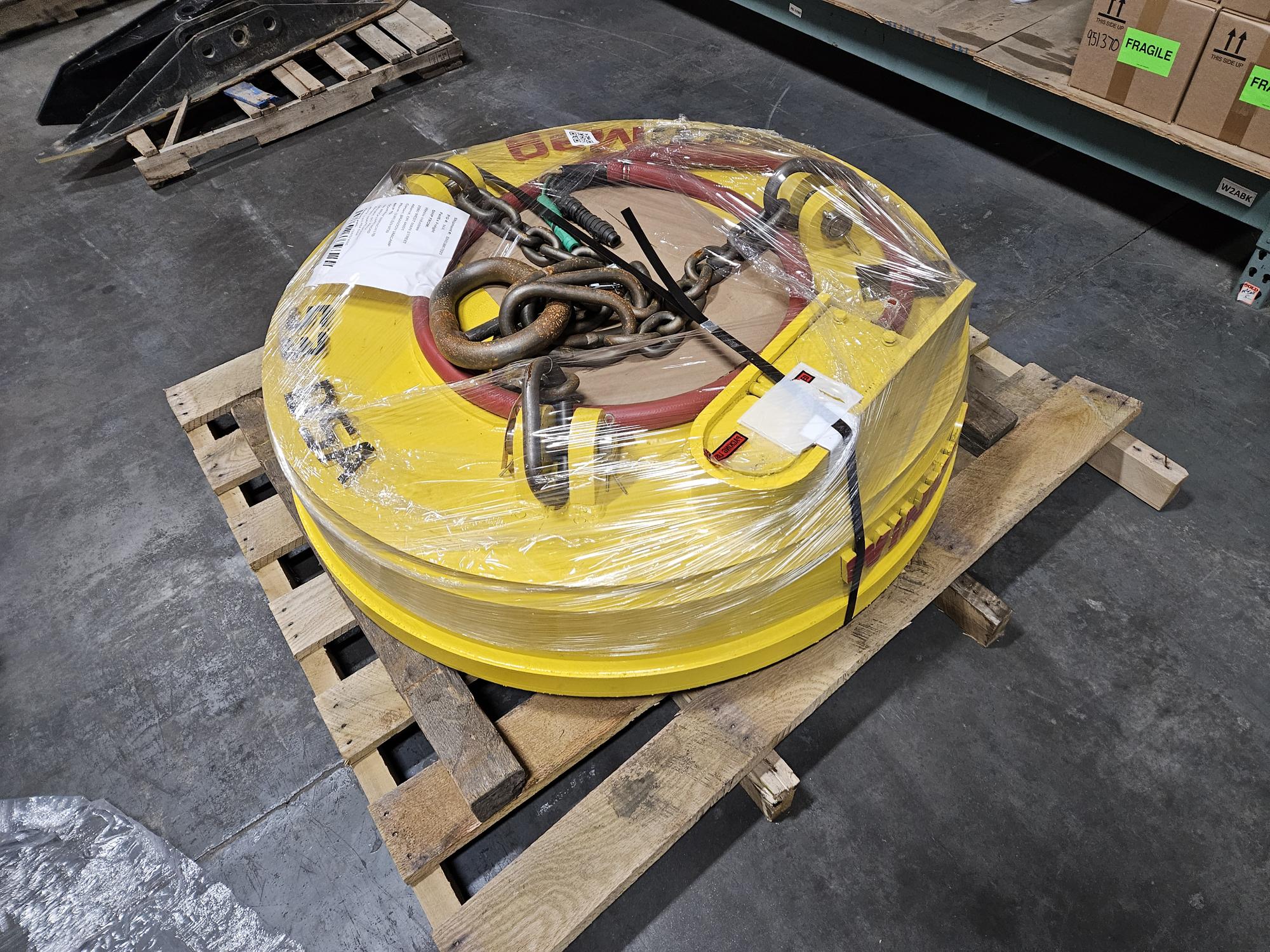 53in Scrap Magnet, 3,825lbs, 55amps, 230v, 13kW Minimum Power Required, #8 Minimum Cable Required.