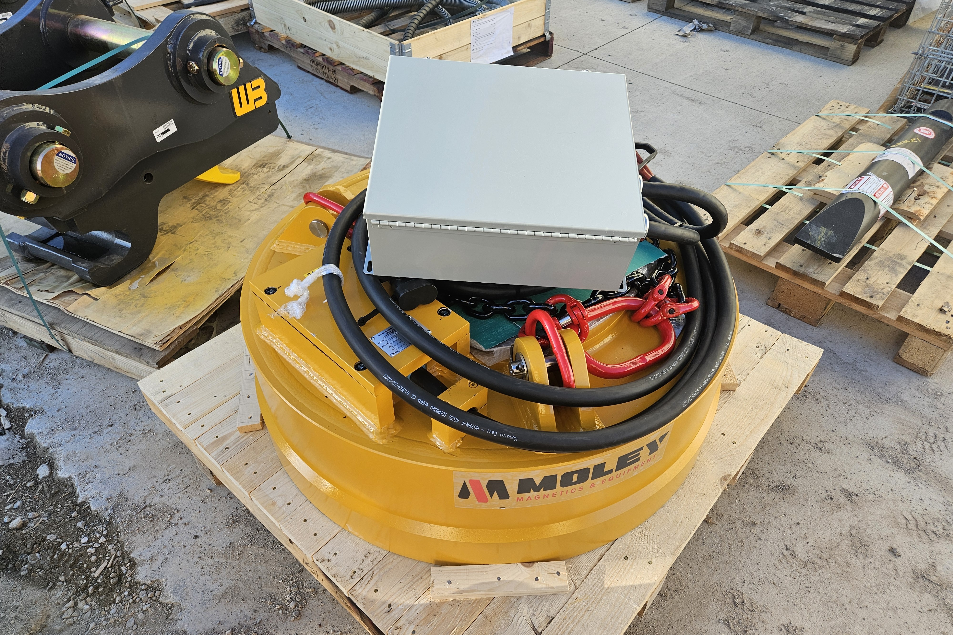 Location: WILLIAMSTOWN,NJHydraulic Scrap Magnet, 3,386lb Weight, 42in Diameter, 25gpm, 1,595psi, 230v, 6kW.